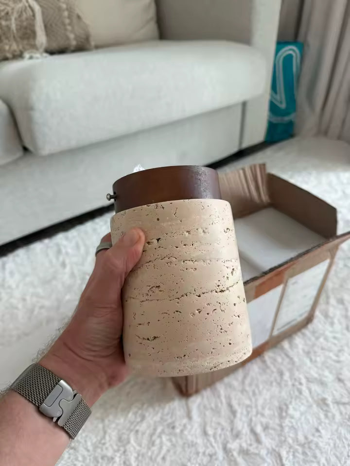 Breng een unieke en organische sfeer in je interieur met de Claroo™ Cava Hanglamp. Deze bijzondere hanglamp combineert de ruwe, natuurlijke uitstraling van travertin steen met de warme luxe van walnoothout. De combinatie van materialen zorgt voor een harmonieuze balans tussen robuust en verfijnd, perfect passend binnen Japandi, Wabi-Sabi of modern minimalistisch design.