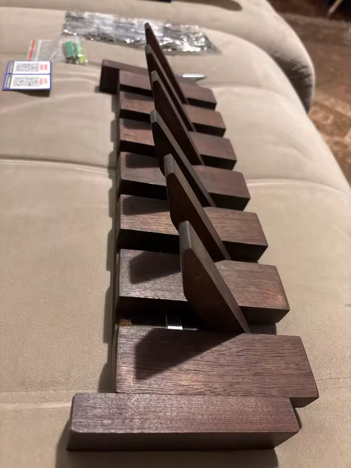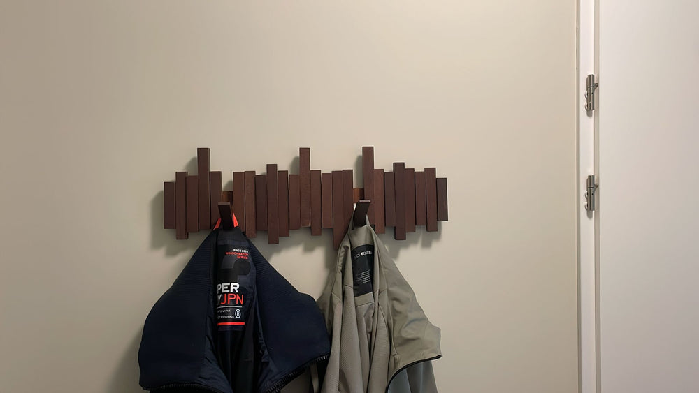 Voeg een vleugje muzikale elegantie toe aan je huis met onze Claroo™ Key Kapstok! Deze handgemaakt van walnoot- of beukenhout, elke haak wordt magnetisch vastgehouden en kan indien nodig moeiteloos worden ingeklapt.