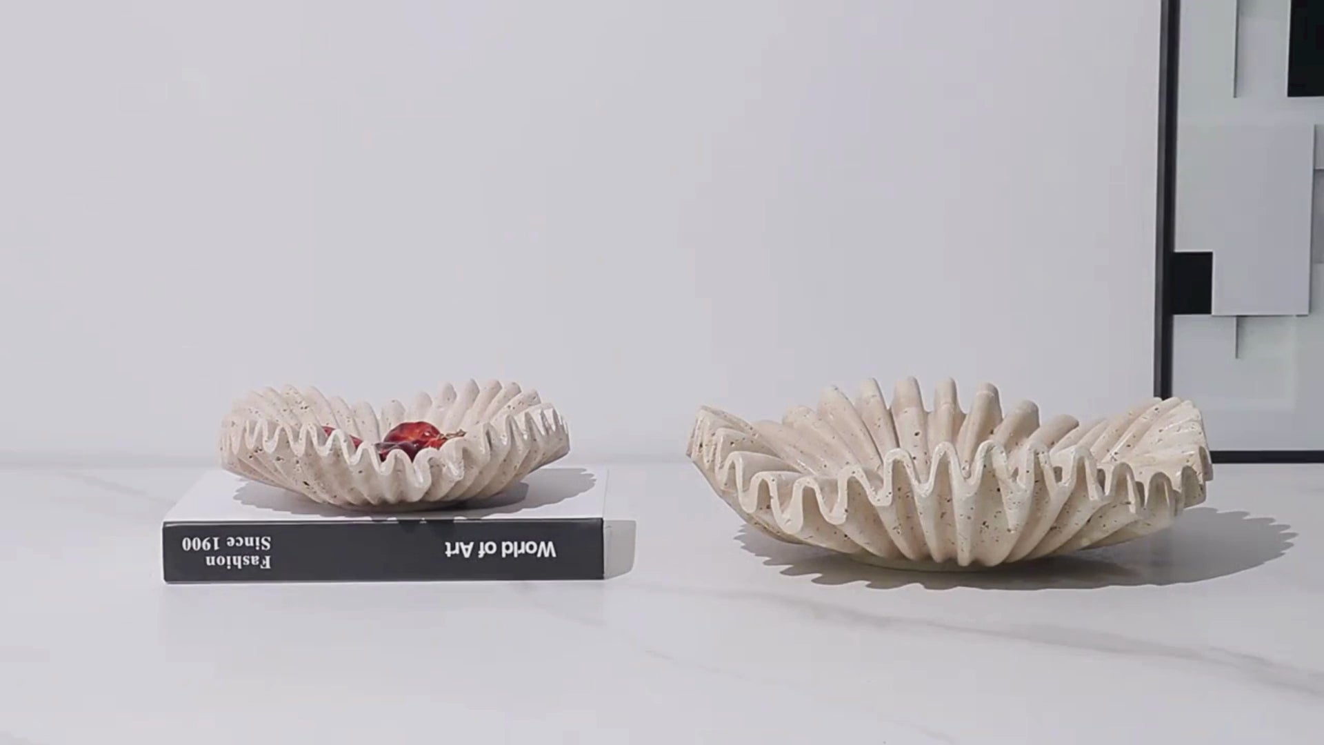 De Shell Fruitschaal is gemaakt van authentiek travertin, een natuursteen vol karakter met warme tinten en unieke nerven. Het licht dat het gesteente raakt, onthult de natuurlijke diepte en straalt een zachte, uitnodigende warmte uit. Tijdloos, stijlvol en altijd uniek. Een stukje natuur dat sfeer en elegantie toevoegt aan je interieur.